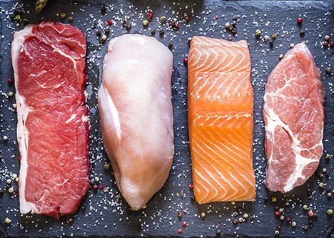 Kırmızı et, tavuk, balık ve hindi gibi etler